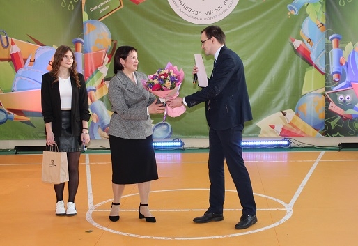 На презентацию музея-театра коллектив школы пригласил директора благотворительного фонда “Будущее Сейчас” Константина Ситникова, который поздравил сотрудников учреждения с успешной реализацией проекта и юбилеем учреждения.